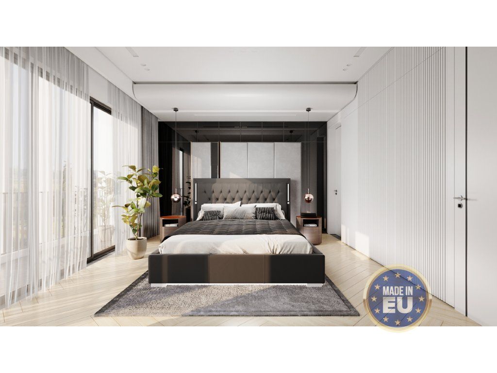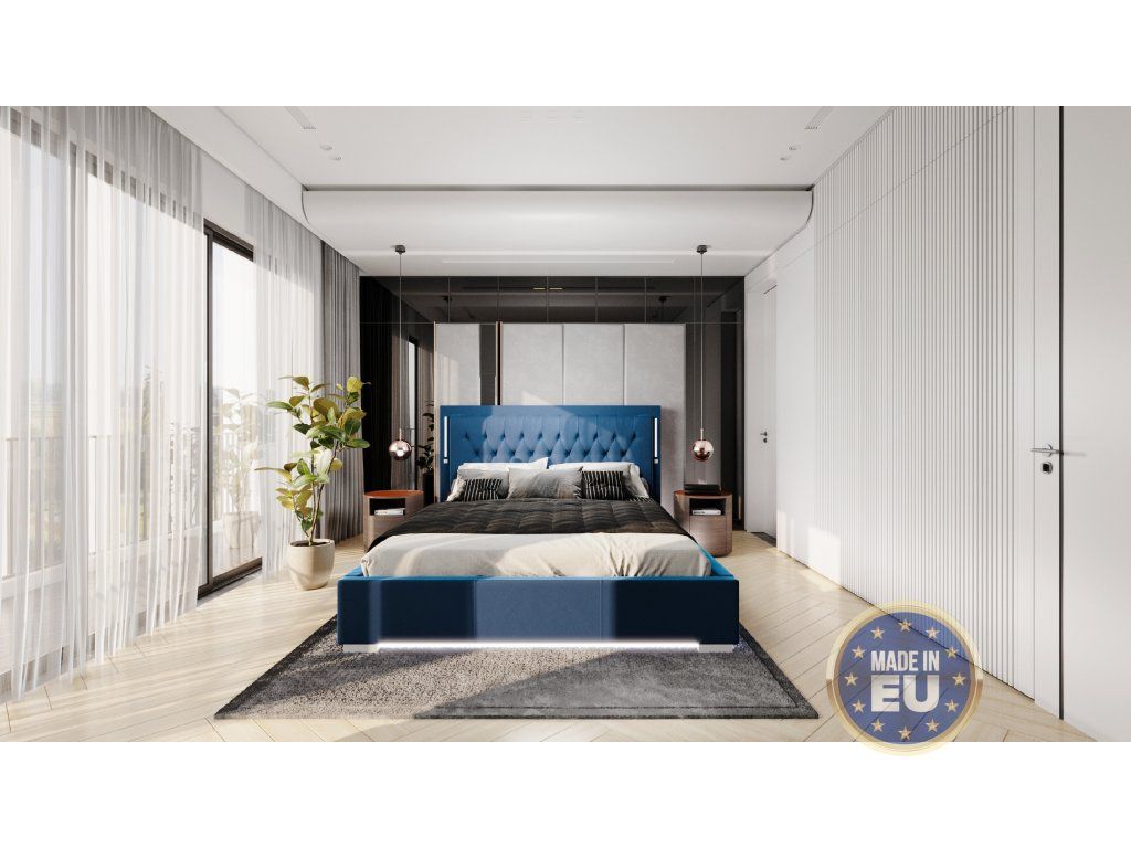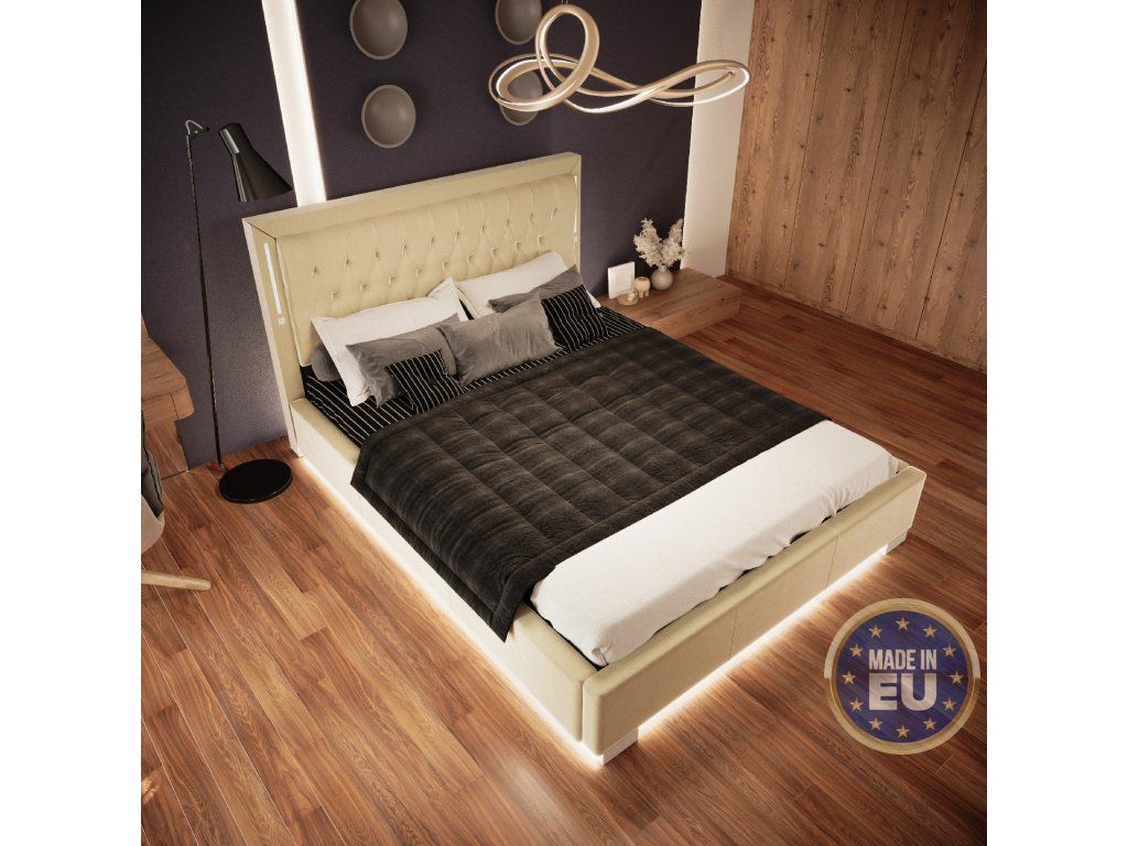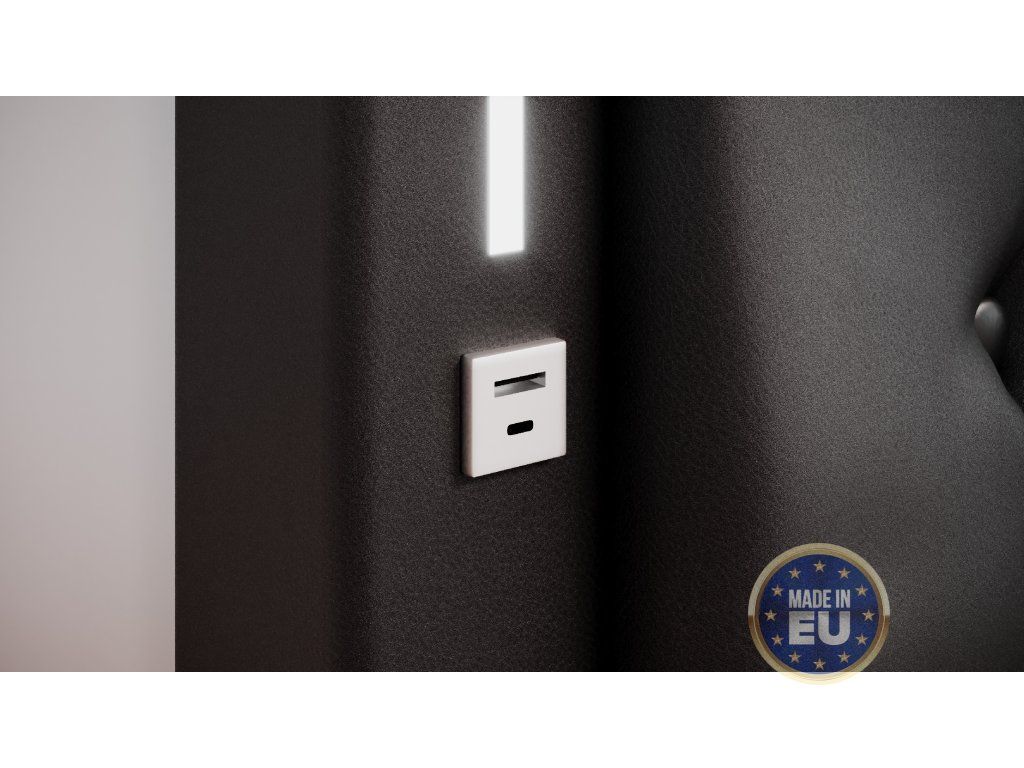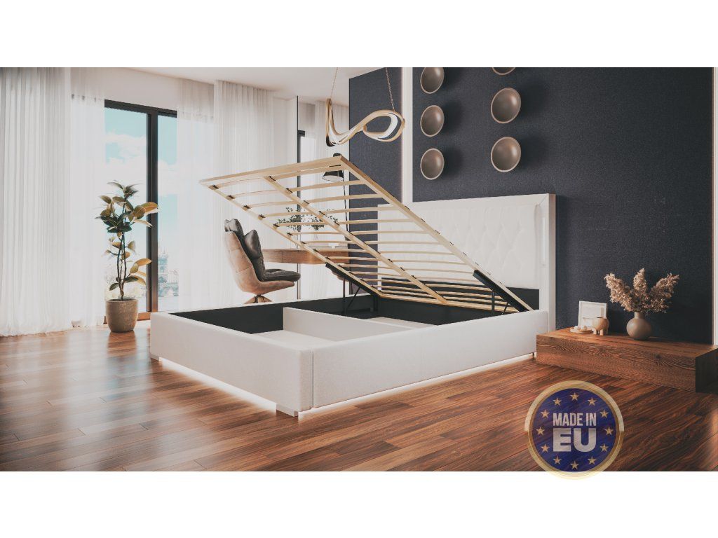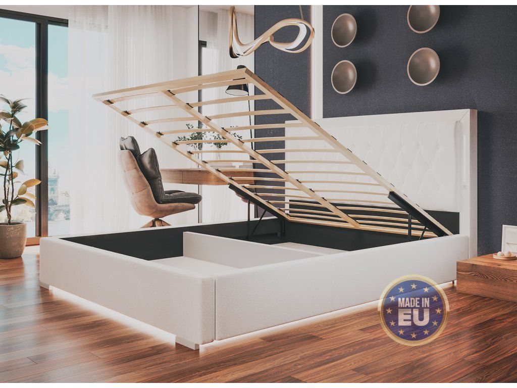 Boxspring postel RELINA s úložným prostorem a LED a USB, 140×200 cm, bílá eko kůže 21