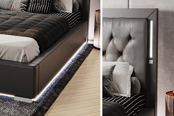 Boxspring postel RELINA s úložným prostorem a LED a USB
