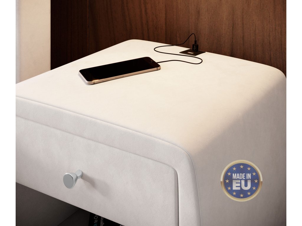 Noční stolek Lilly s USB, bílá Eko kůže 21