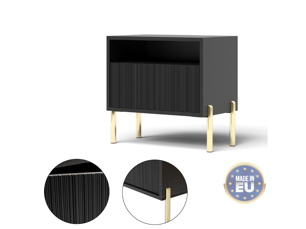 Noční stolek Oslo kombinuje funkčnost s elegantním designem. Díky dvířkům a otevřené poličce získáš ideální prostor pro uložení knih, časopisů nebo drobností, které chceš mít po ruce.