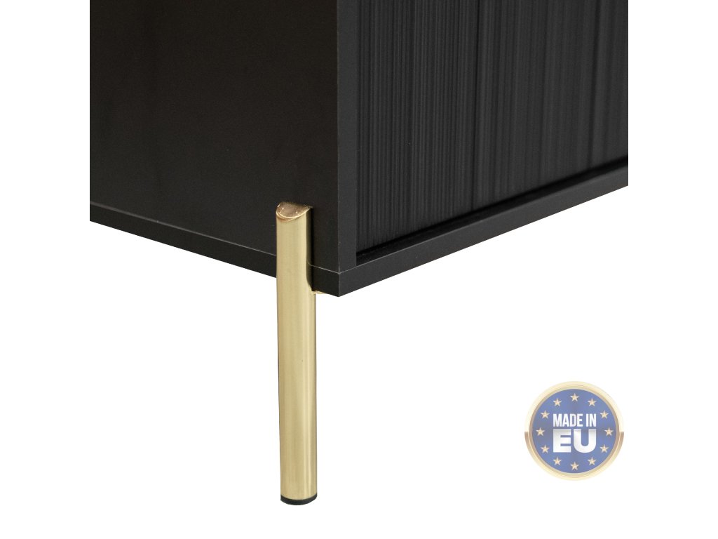 Stolek je vyroben z laminované desky o tloušťce 16 mm se zvýšenou odolností proti poškrábání – takže vypadá skvěle i při každodenním používání. Zlaté nožky dodávají celkovému vzhledu šmrnc a zároveň umožňují snadný úklid pod nábytkem.
